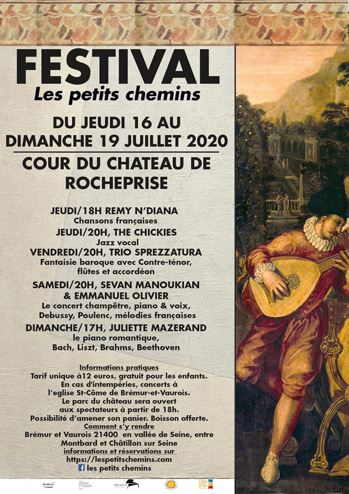 Fantaisie Baroque au chateau de Rocheprise Le trio Sprezzatura vous donne RV Vendredi 20h au chateau de Rocheprise Sébastien Fournier, contre-ténor, Jean-Christophe Hurtaud, flûtes, Michel Glasko Perso, accordéon + Add to Google Calendar + iCal / Outlook export Date Jul 17 2020 Expired! Time 20 h 00 min Cost €12 Location Chateau de Rocheprise 21400 Brémur-et-Vaurois Share this event