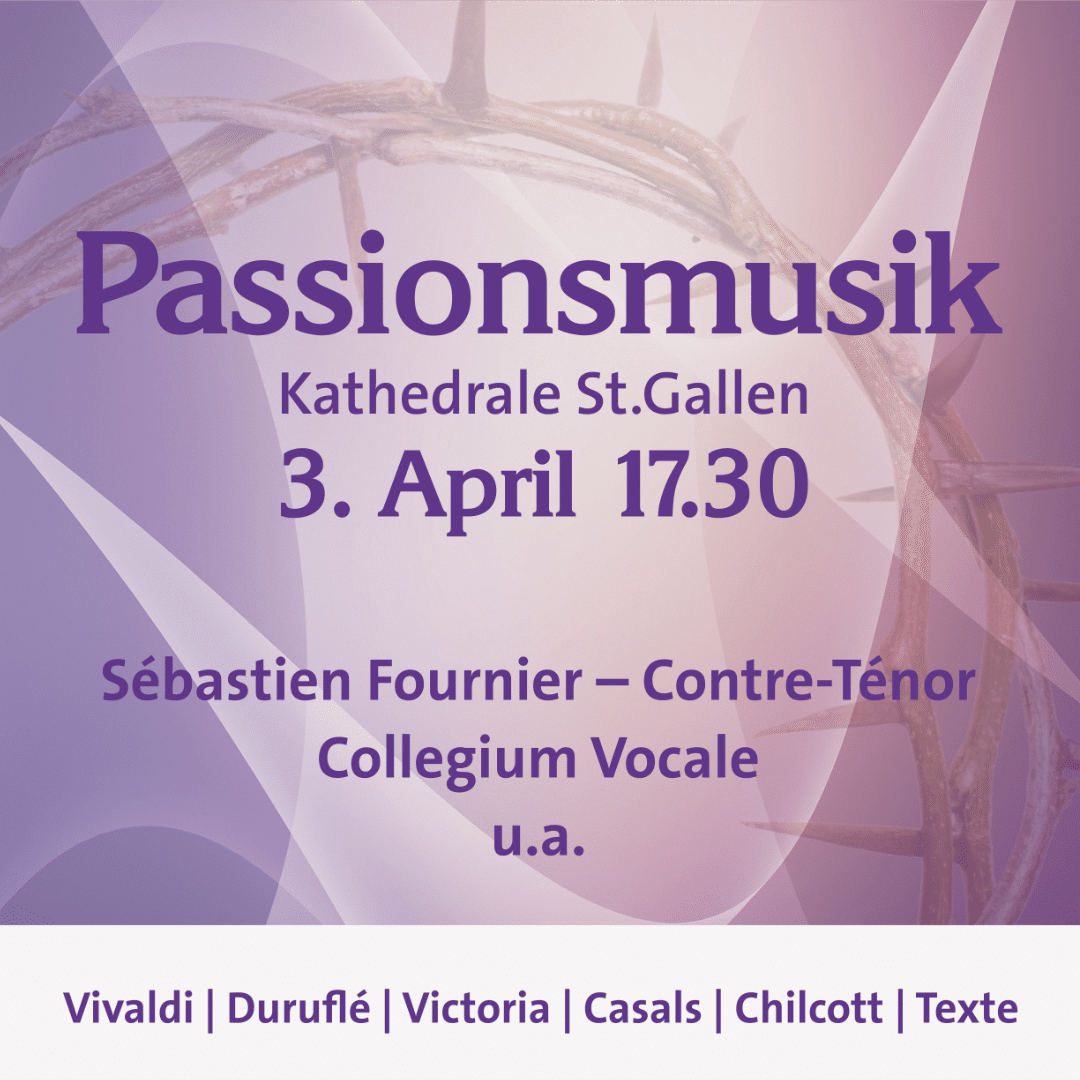 Passionsmusik 5. Fastensonntag mit Sébastien Fournier Contre-Ténor, Collegium Vocale und Collegium Instrumentale